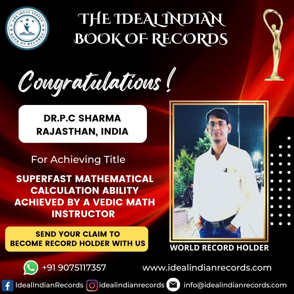Superfast Mathematical Calculation Ability Achieved by A Vedic Math Instructor Dr. P. C Sharma is a Native of Jaipur, Rajasthan, India. He Has an Amazing ability to calculate Mathematical Additions, Subtractions, Multiplication, Division, Square and Square Roots, Cube and Cube Read More …
