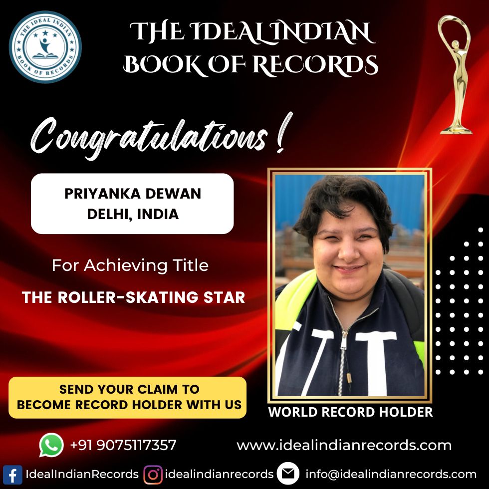 The Roller-Skating Star Priyanka Dewan, DOB 22/06/1999, Native of Delhi. In This Special Recognition And Ideal Achievements, The Ideal Indian Book Of Records Appreciates Priyanka Dewan For Her Outstanding Contribution To The Roller Skating Game. At The Special Olympics World Read More …